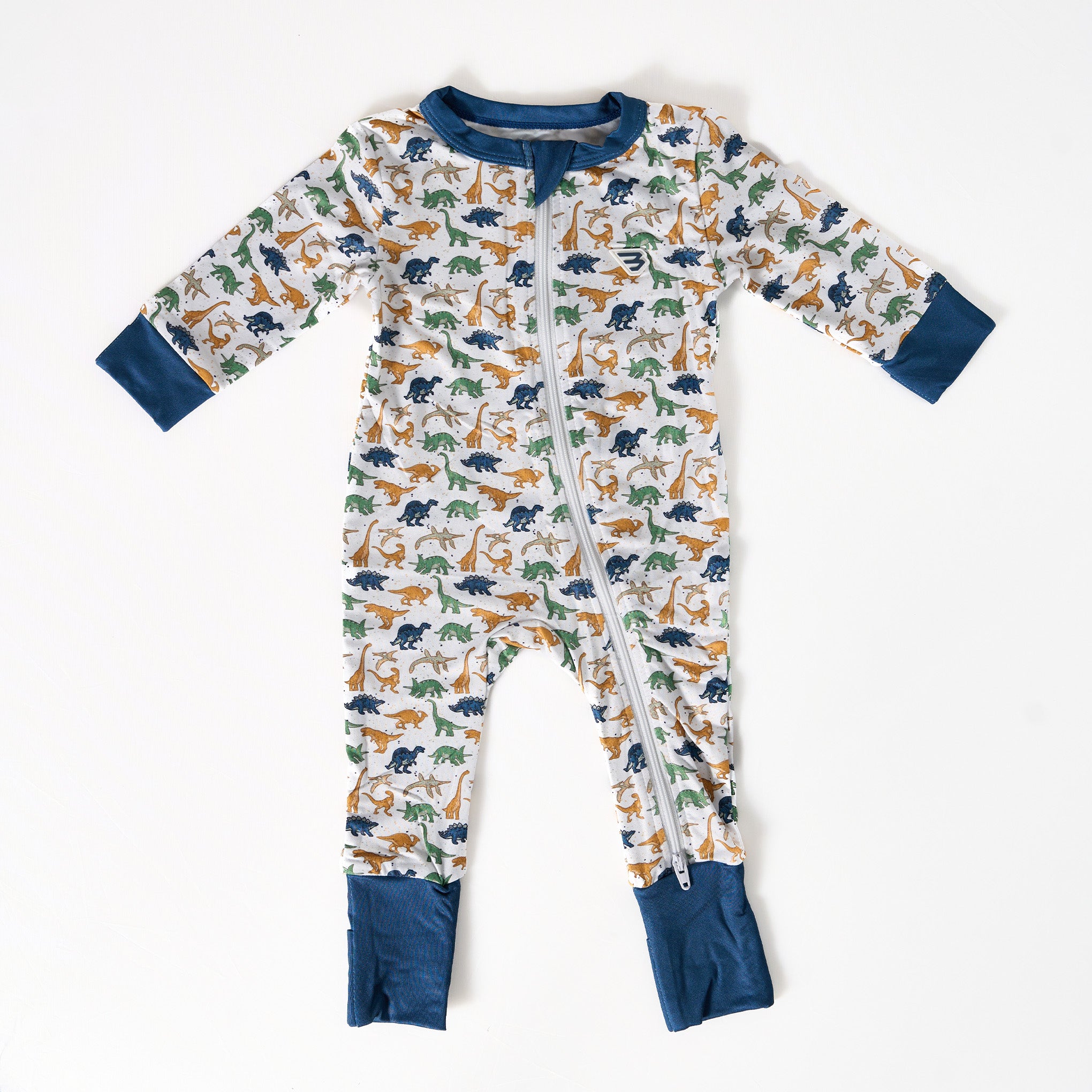Children's onesie with dinosaur pattern on a white background
