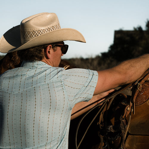 The Performance Western Shirt, crafted for the modern individual who values both style and functionality. Made from a premium blend of 90% Polyester and 10% Spandex, this button-up offers lightweight performance and superior comfort. Constructed from a lightweight performance fabric, designed to keep you cool and comfortable all day long. The breathable, quick-dry, and moisture-wicking properties ensure you stay dry and fresh, while the four-way stretch fabric provides maximum flexibility and mobility.