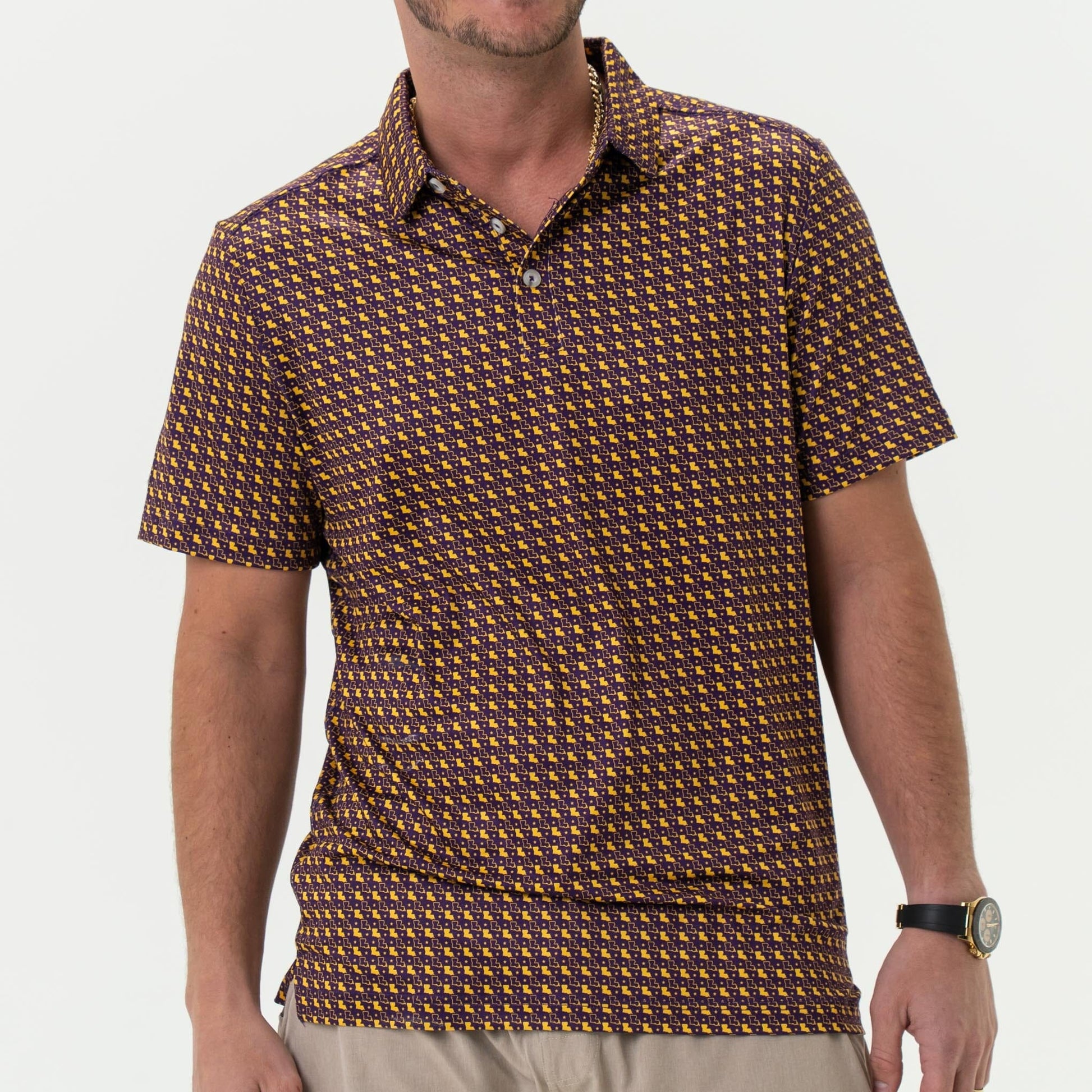 Performance Polo - Louisiana - Purple & Yellow
