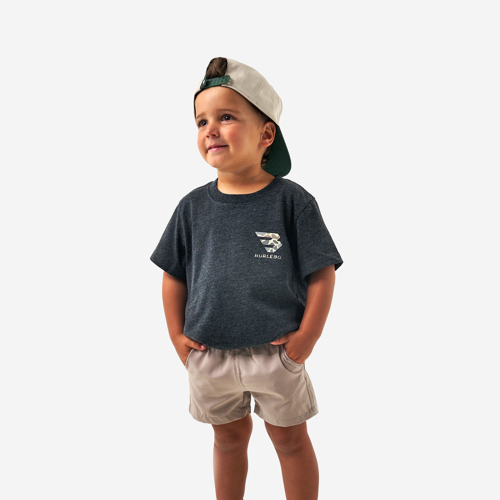 Youth Short Sleeve Tee - Flying B Deer Camo Logo - Heather Black