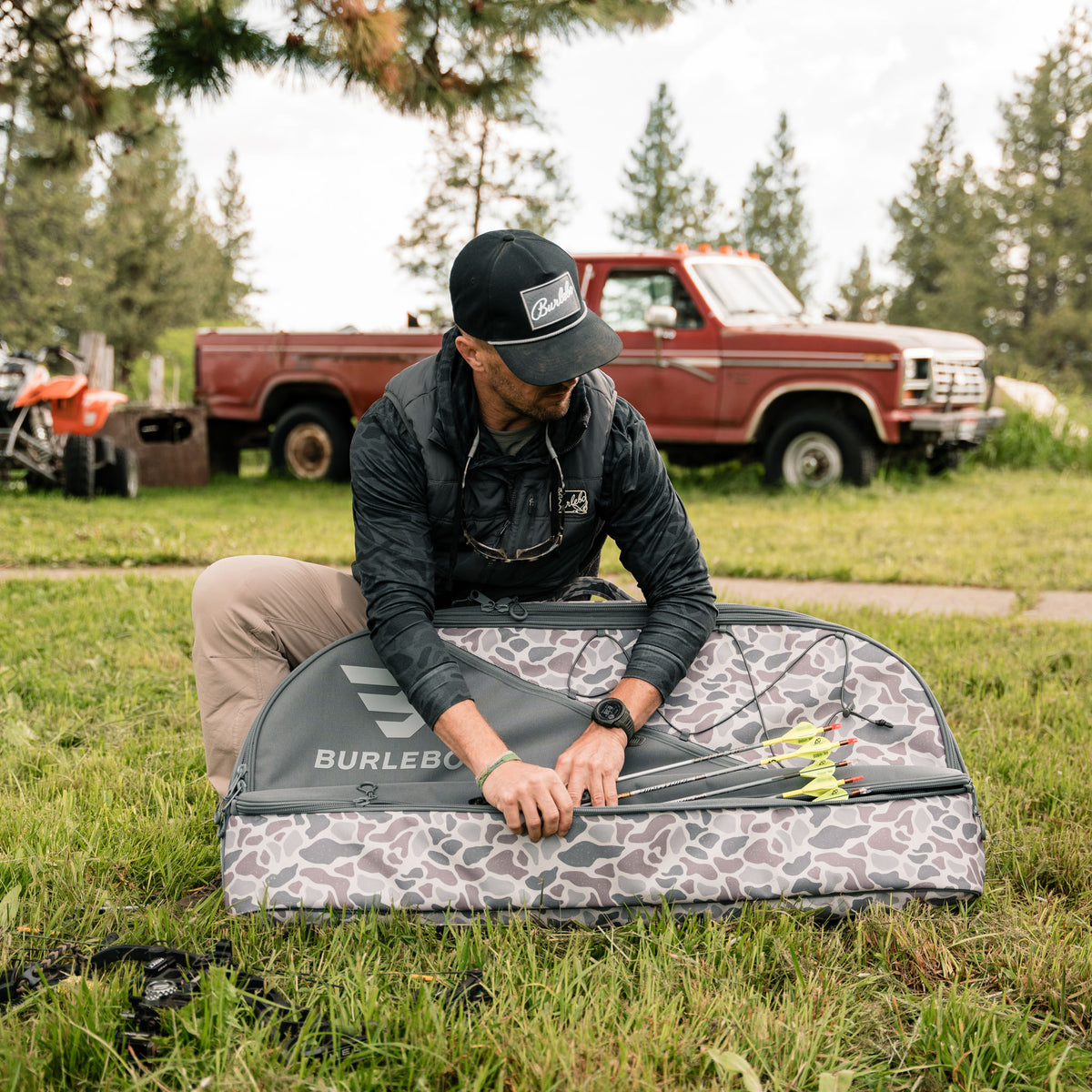 Padded front arrow pocket for protected and accessible arrow storage.