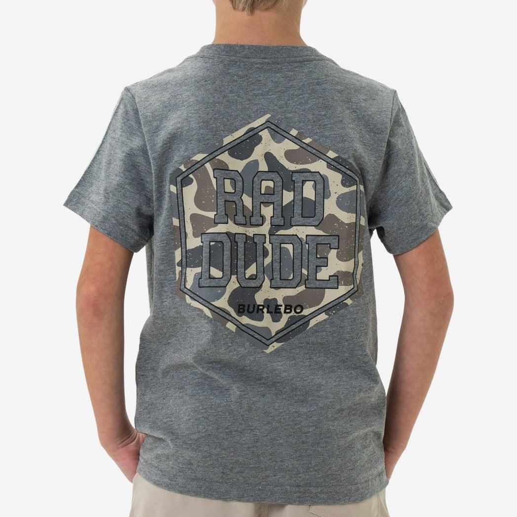 Youth Short Sleeve Tee - Rad Dude Deer Camo - Dark Heather Grey